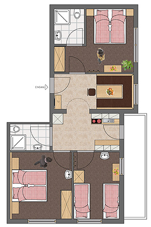 Alle Wohnungen sind sehr geräumig und im Tiroler Baustil eingerichtet. Im gemütlichen Fernseh- und Aufenthaltsraum können Sie neue Bekanntschaften schließen und ruhige Abende genießen.
